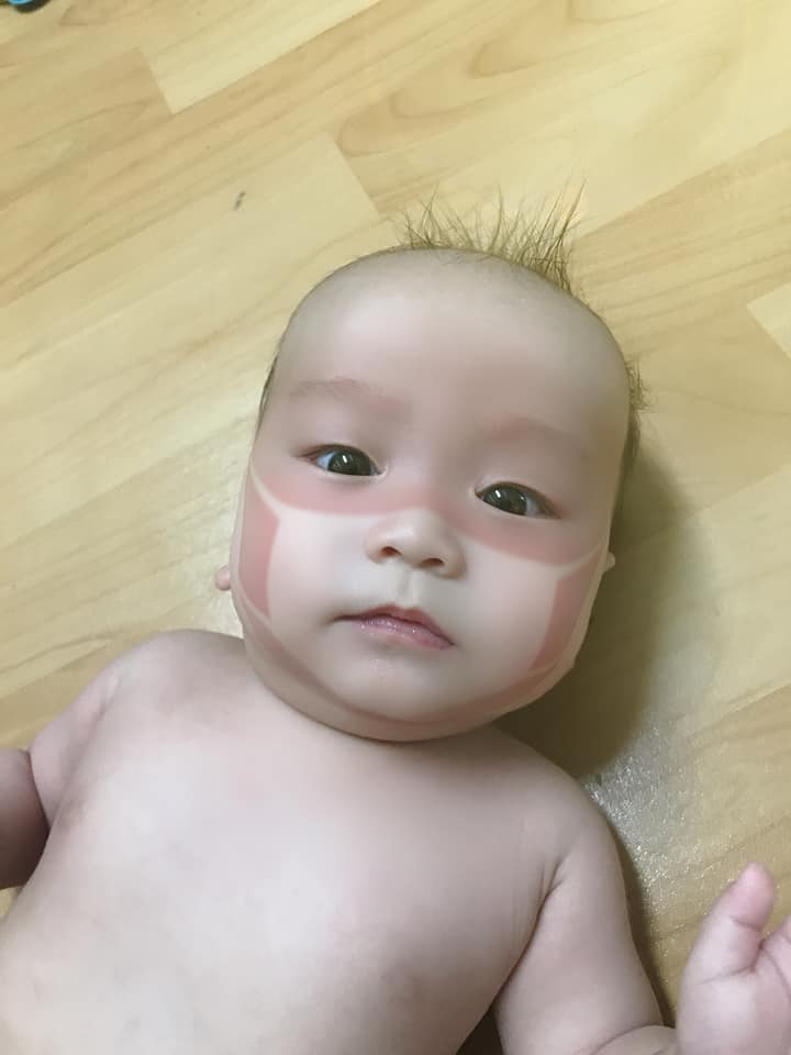 弟弟表示:媽媽...口罩我真的有戴好啊!